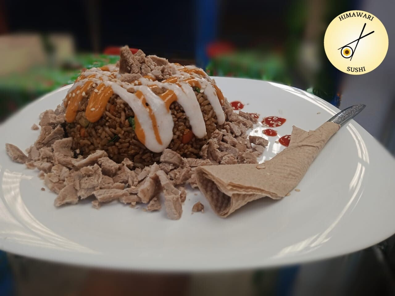 Arroz sazonado con verduras, bañado en aderezo chipotle y tampico.